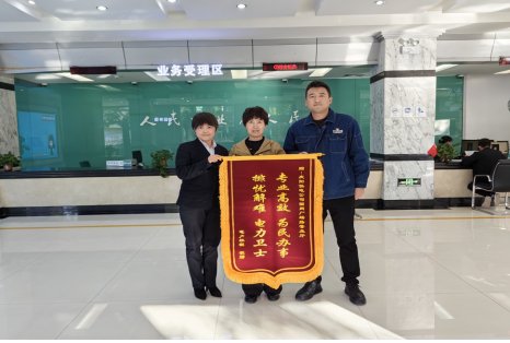 10月31日,张女士将一面印有“专业高效 为民办事 排忧解难 电力卫士”的锦旗送到了国网庆阳供电公司城区供电所广场路营业厅,对该公司工作人员的优质服务表示感谢。