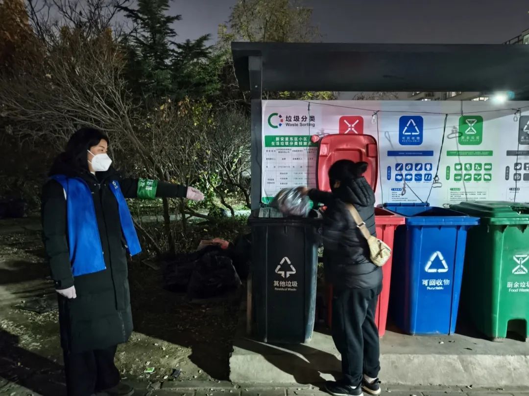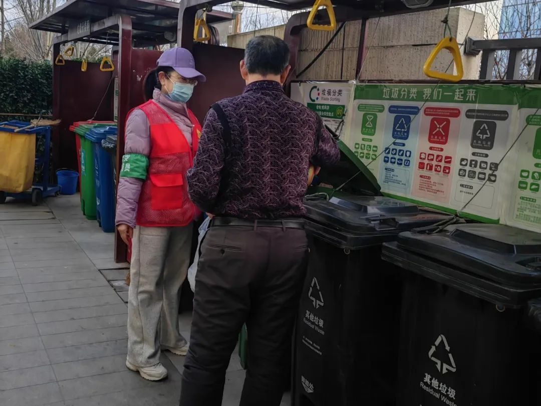 志愿者们通过桶站值守指导居民垃圾分类投放,对未分类或分类错误的行为进行及时提醒,向居民讲解正确的分类方法,进一步增强社区居民的垃圾分类意识,促进居民养成垃圾分类的好习惯,共建一个更加美丽、宜居的社区环境。