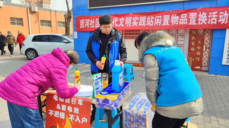 团河社区正在举办闲置物品置换活动。 图源:大兴区消防救援支队