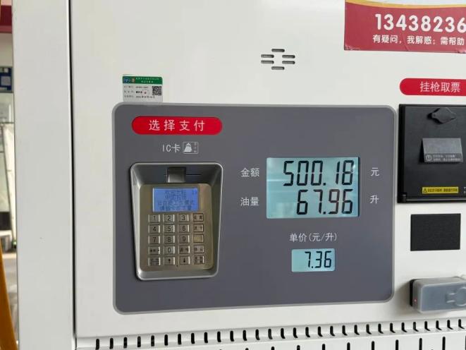 杨先生介绍,8月9日上午10点45分,他驾车在成都市二环路三段的中国石油锦华天山站加油。当油枪跳停,他准备付款时,发现油费高达500.18元,这让他很意外,因为他的车加92#汽油,平时加油费从未超过310元。他再看加油量,竟然显示他的车被加注了67.96升汽油。他当即就意识到哪里出问题了。